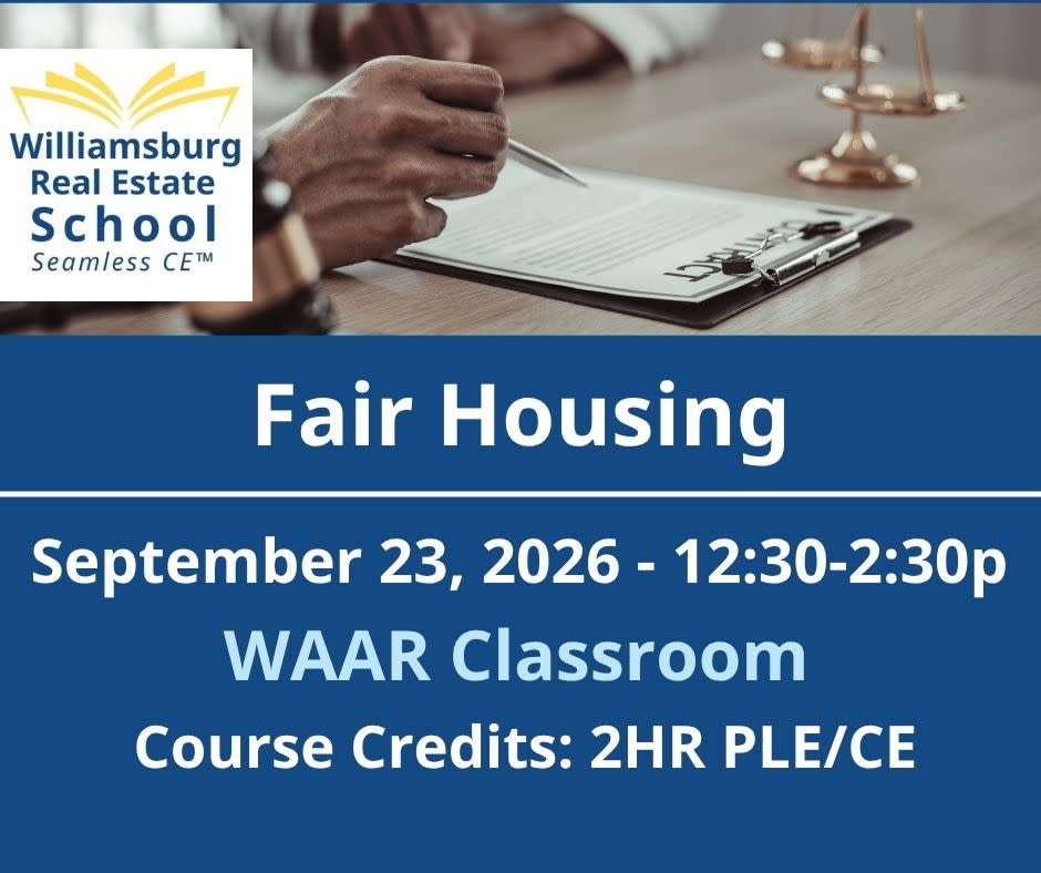 This course satisfies NAR Triennial education requirements and provides a strong foundation in Fair Housing laws, promoting ethical practice, equitable client service, and the protection of the public while upholding professional standards. Approved for 2HR PLE or CE or Appraiser CE