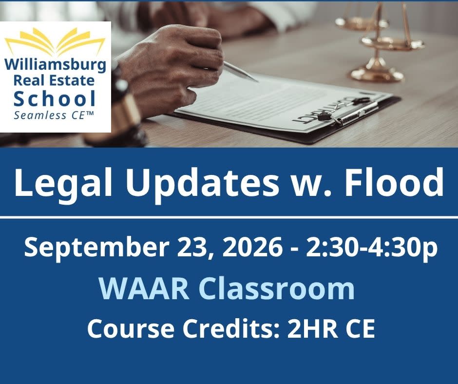 Stay current with the latest legal developments affecting real estate practice, including changes to flood insurance regulations and related disclosure requirements. This 2-hour CE course helps you manage risk, protect clients, and maintain compliance with state and federal laws. Approved for 2HR CE