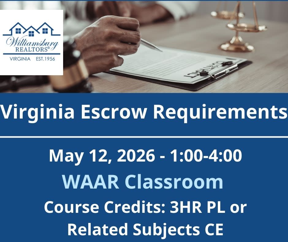 This course provides an in-depth look at escrow procedures in Virginia real estate transactions, including handling client funds, trust accounts, and regulatory compliance. Learn best practices to protect clients, minimize risk, and ensure smooth closings.